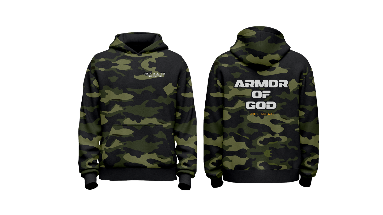The Armor of God Hoodie features a bold camo pattern, inspired by Philippians 6:13. It’s designed to be more than just clothing—it’s a statement piece that reflects strength, resilience, and faith. A perfect choice for everyday wear while staying spiritually grounded.